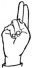 На ћирилици написано ДАНИЈЕЛ ГАЋЕ састоји се из 11 слова [?]. Исписано ћириличном једноручном азбуком за глувонеме: